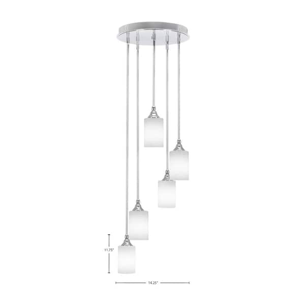 Villa 5 Light Chrome Pendant, Cluster Pendant Light with 4 in. White Matrix Glass Shades, No Bulbs Included
