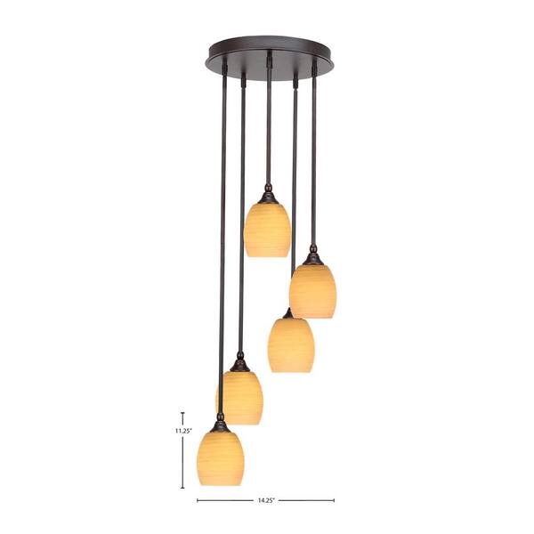 Villa 5 Light Dark Granite Pendant, Cluster Pendant Light with 5 in. Cayenne Linen Glass Shades, No Bulbs Included