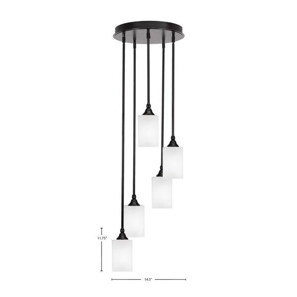 Villa 5 Light Espresso Pendant, Cluster Pendant Light with 4 in. White Muslin Glass Shades, No Bulbs Included