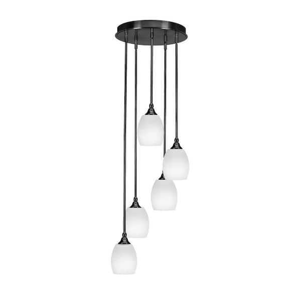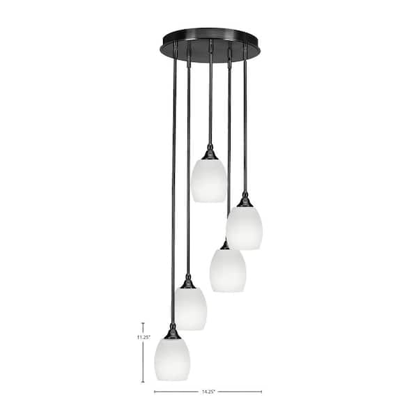 Villa 5 Light Matte Black Pendant, Cluster Pendant Light with 5 in. White Linen Glass Shades, No Bulbs Included
