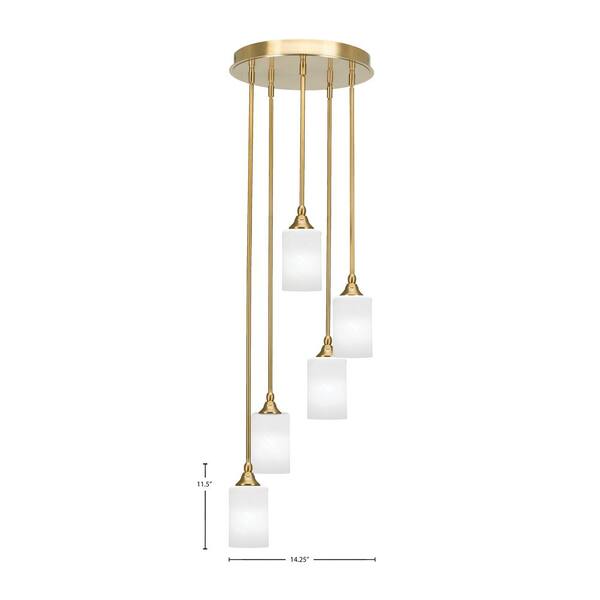 Villa 5 Light New Age Brass Pendant, Cluster Pendant Light with 4 in. White Marble Glass Shades, No Bulbs Included