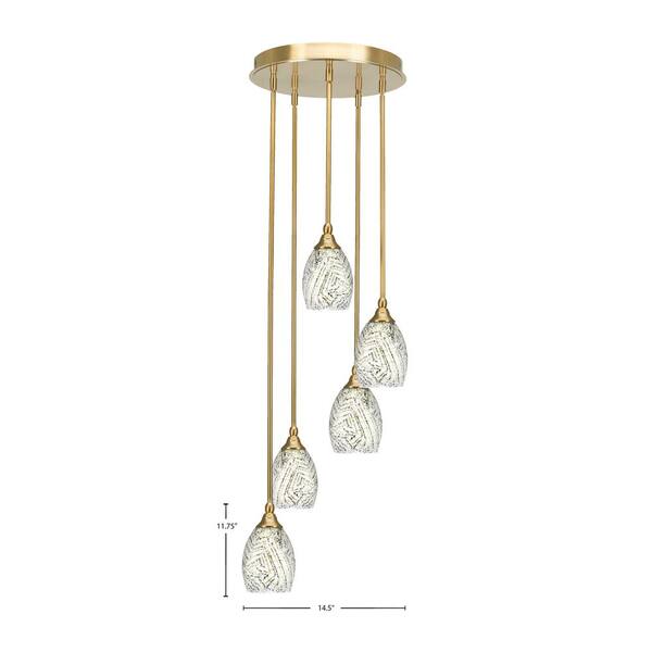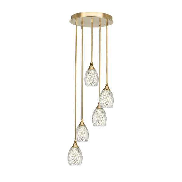 Villa 5 Light New Age Brass Pendant, Cluster Pendant Light with 5 in. Natural Fusion Glass Shades, No Bulbs Included