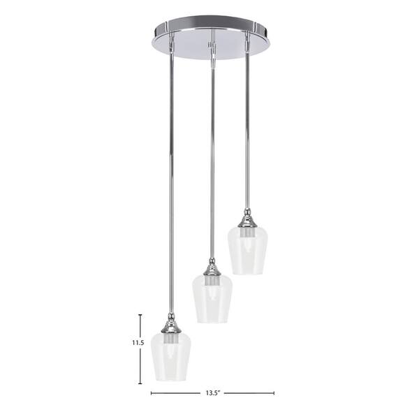 Villa 60-Watt 13.5 in. 3 Light Chrome Stem Pendant Light with 5 in. Clear Bubble Glass Shade, No bulbs included