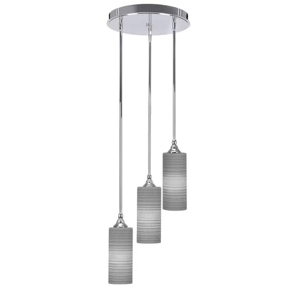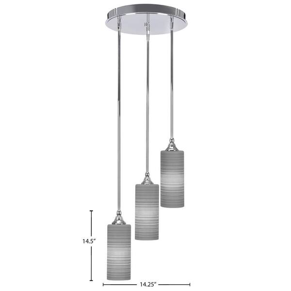 Villa 60-Watt 14.25 in. 3 Light Chrome Stem Pendant Light with 4 in. Gray Matrix Glass Shade, No bulbs included