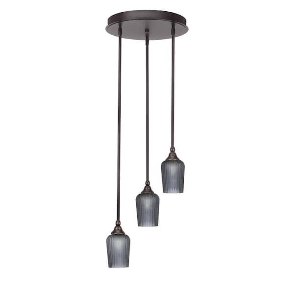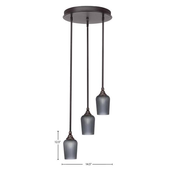 Villa 60-Watt 14.5 in. 3 Light Dark Granite Stem Pendant Light with 5 in. Smoke Textured Glass Shade, No bulbs included