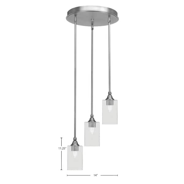 Villa 60-Watt 14 in. 3 Light Brushed Nickel Stem Pendant Light with 4 in. Clear Bubble Glass Shade No bulbs included