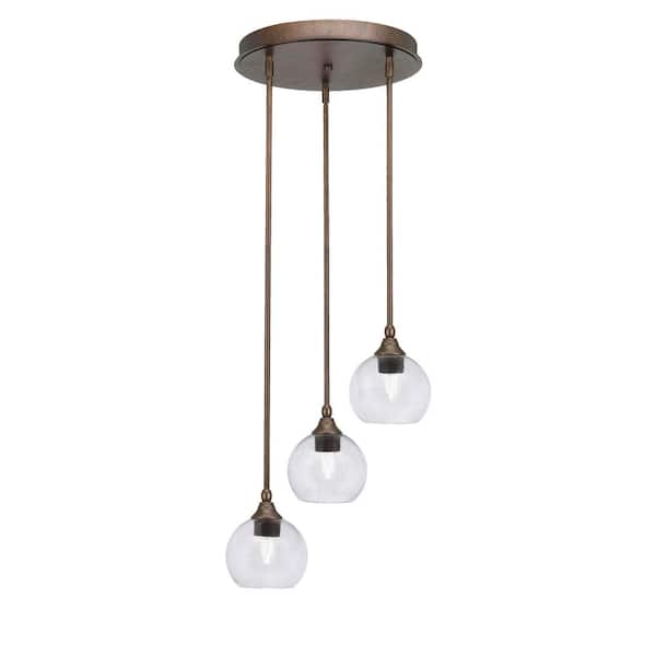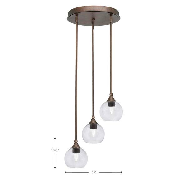 Villa 60-Watt 15 in. 3 Light Bronze Stem Pendant Light with 5.75 in. Clear Bubble Glass Shade No bulbs included