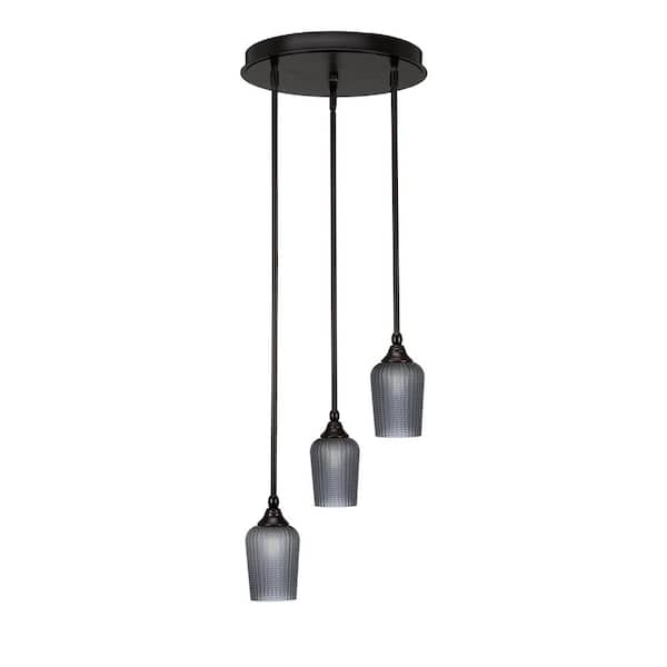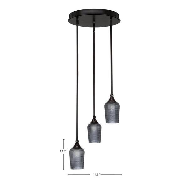 Villa 60-Watt in. 3 Light Espresso Stem Pendant Light with 5 in. Smoke Textured Glass Shade, No bulbs included