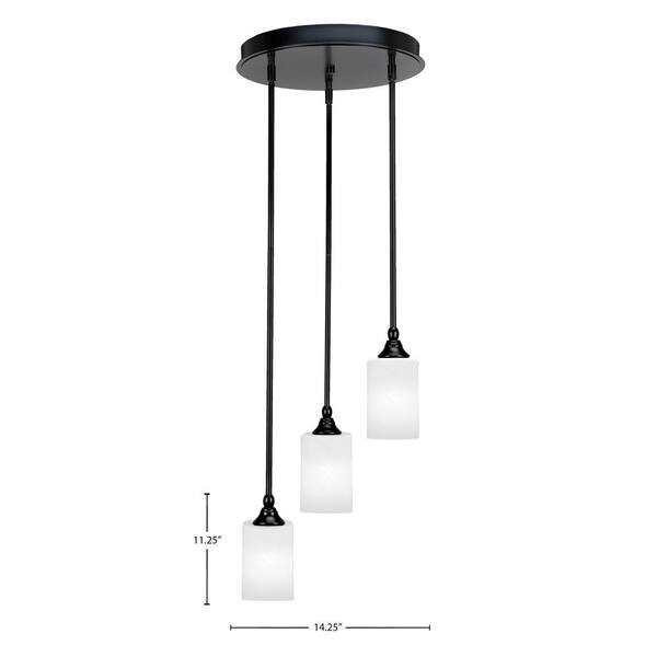Villa 60-Watt in. 3 Light Matte Black Stem Pendant Light with 4 in. White Marble Glass Shade, No bulbs included
