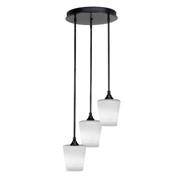 Villa 60-Watt in. 3 Light Matte Black Stem Pendant Light with 6 in. White Matrix Glass Shade, No bulbs included