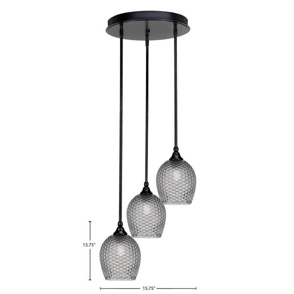 Villa 60-Watt in. 3 Light Matte Black Stem Pendant Light with 7.5 in. Smoke Textured Glass Shade, No bulbs included