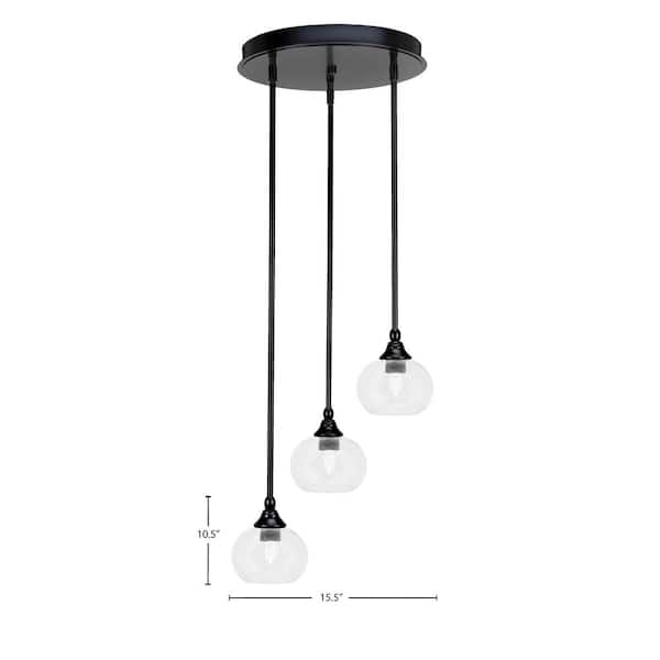 Villa 60-Watt in. 3 Light Matte Black Stem Pendant Light with 7 in. Clear Bubble Glass Shade, No bulbs included