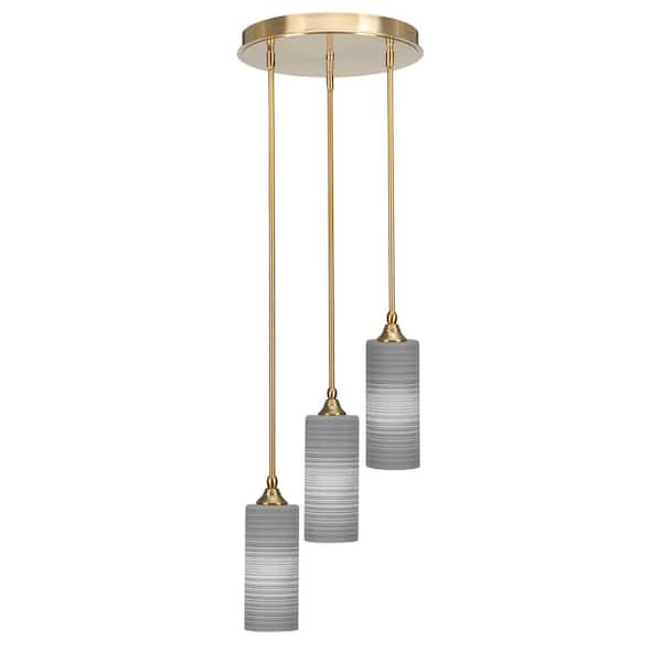 Villa 60-Watt in. 3 Light New Age Brass Stem Pendant Light with 4 in. Gray Matrix Glass Shade, No bulbs included