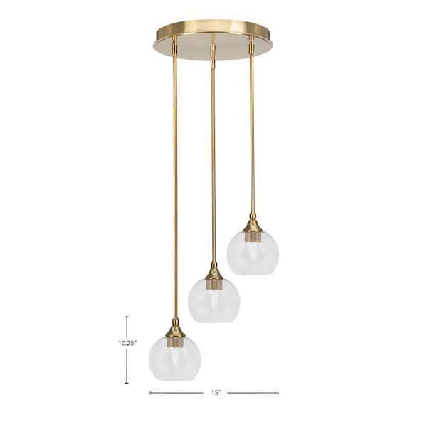 Villa 60-Watt in. 3 Light New Age Brass Stem Pendant Light with 5.75 in. Clear Bubble Glass Shade, No bulbs included