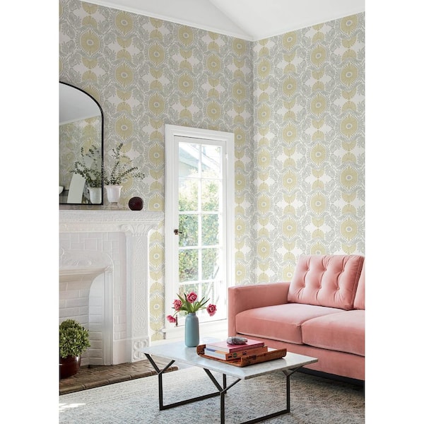 Villa Embellished Ogee Yellow Nonpasted Non Woven Wallpaper