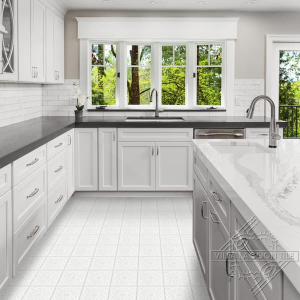 Andalusia Petite Fog in Fog Gray and White/Matte 8 in. x 8 in. Cement Handmade Tile Sample