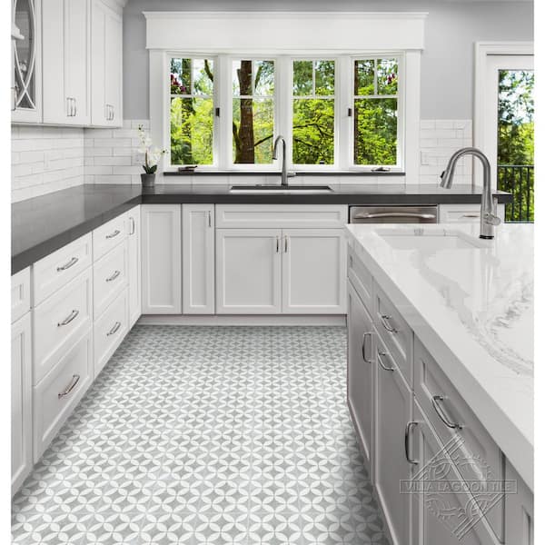 • Gray and white square cement floor and wall tile