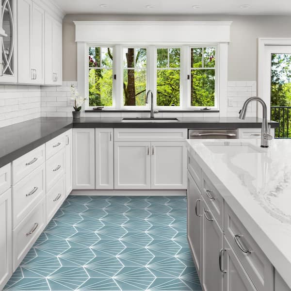 Spark C Stone Blue 8 in. x 9 in. Cement Handmade Tile Sample
