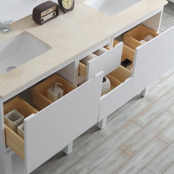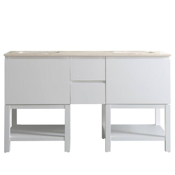 Venzia 60 in. W x 21 in. D x 36 in. H Vanity in White with Marble Vanity Top in Creama Marfil with White Basin