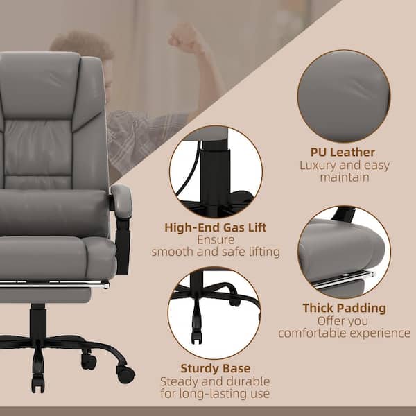 Gray High Back Faux Leather Vibration Massage Office Chair with 6 Points, Retractable Footrest and Remote