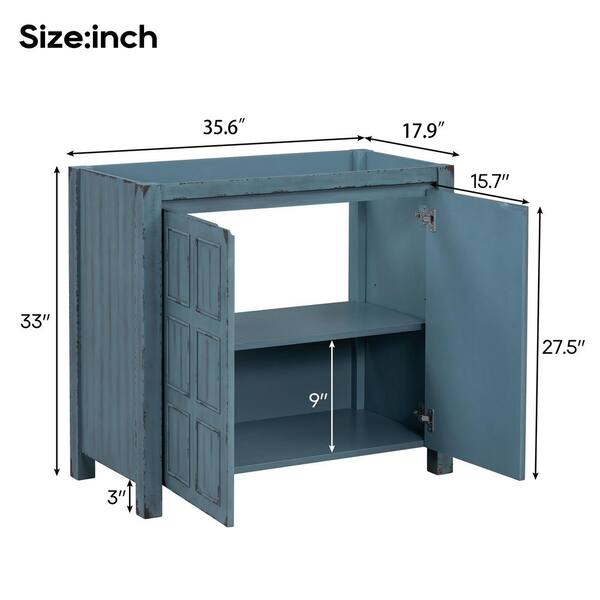 Vintage Distressed 36 in. Bath Vanity Cabinet without Top in Blue Unassembled