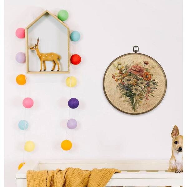 Vintage Floral Framed Wall Art Decor, Farmhouse Flower Round Wall Hanging, 10 in. x 10 in. x 0.2 in.