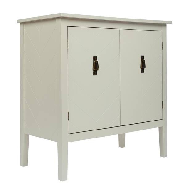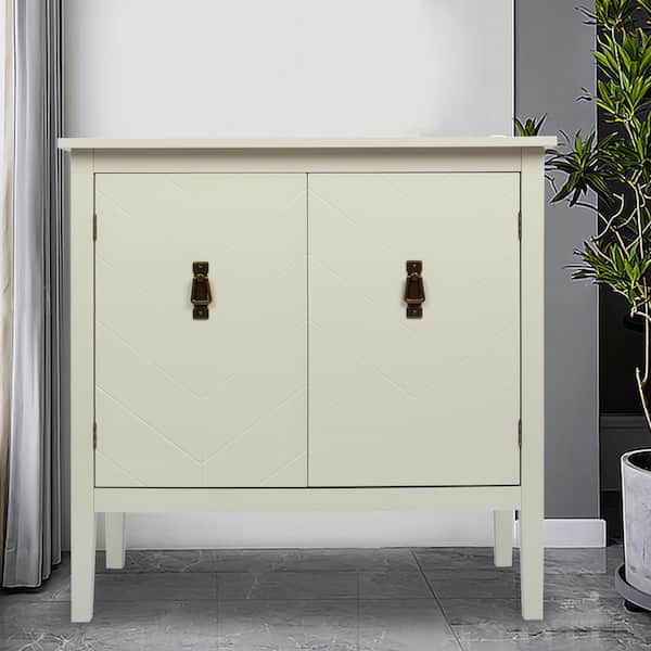 Vintage Off White Freestanding Accent Storage Cabinet with 2 Doors and Adjustable Shelf