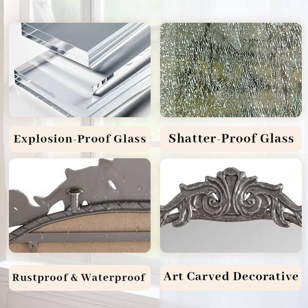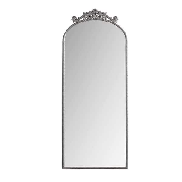 Vintage Ornate Carved Applique Silver 24 in. W x 58 in. H Arch Metal Framed Mirror Wall Mounted