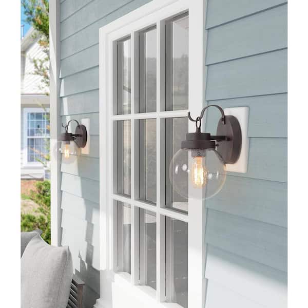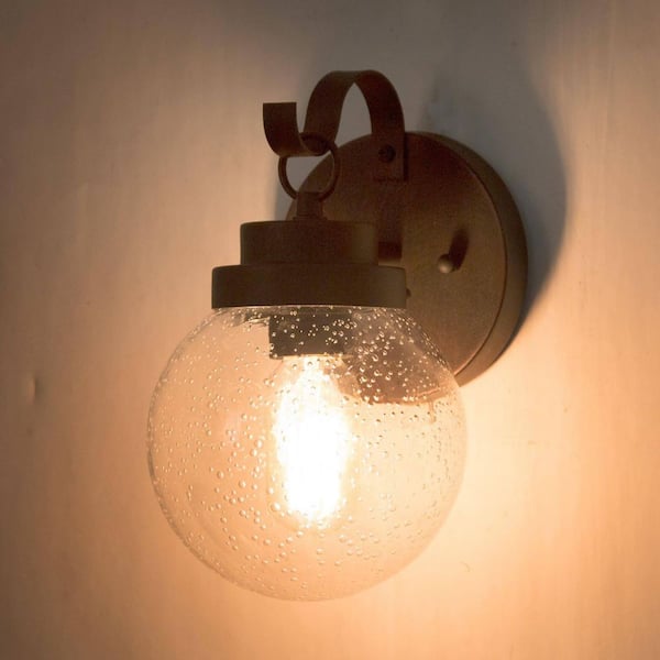 Vintage Textured Rust 1-Light Globe Outdoor Wall Sconce with Seeded Glass Shade and No Bulb Included