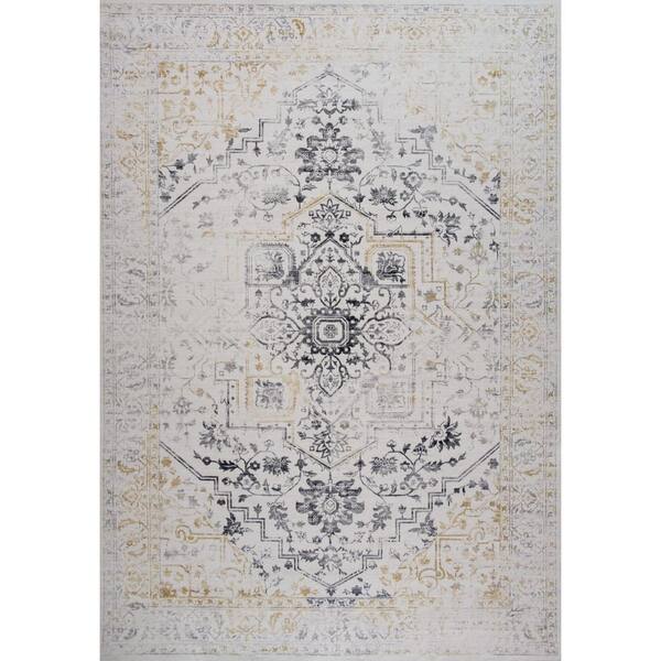 Vintage Traditional Distressed Cream Gold 7 ft. x 10 ft. Indoor Soft Area Rug
