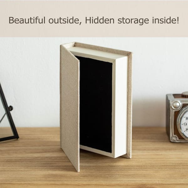 8" Classic Linen Book Box, Vintage-Style Decorative Storage for Keepsakes, Jewelry, Documents, Sand, 6 in. W