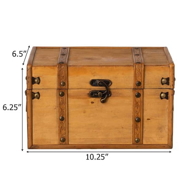 Farmhouse Antique-Style Wood Treasure Chest with Leather Straps and Latch Decorative Storage Trunk, Large