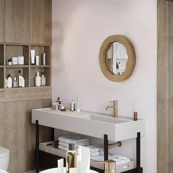 Hanging 13.25 in. x 1 in. Rustic Round Framed Natural No Features Decorative Mirror