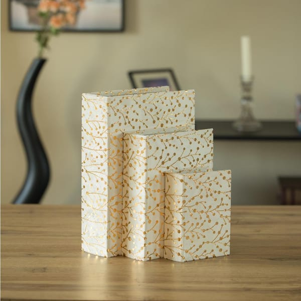 White Velvet Vintage Storage Wooden Antique Classic Decorative Book Box Holder (Set of 3)