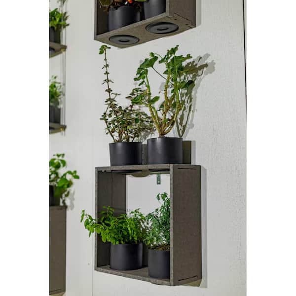 Urban Garden 2 12 in. Coffee Brown Composite Resin Garden Case with 4-Pots Wall Planter (2-Pack)