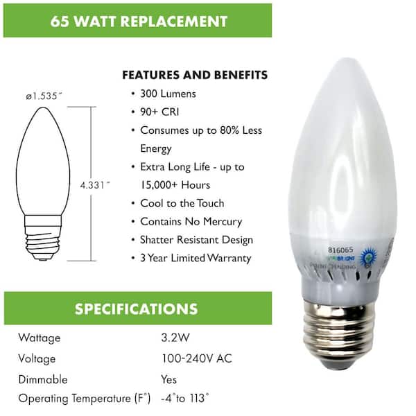 40-W Equivalent 3. 2W B11 E26 40-Watt EQ Frosted Candelabra LED Light Bulb 6000K 90+ CRI- 2 Pack