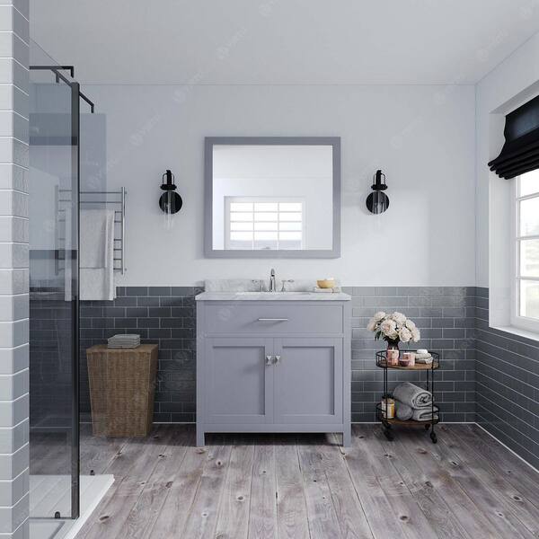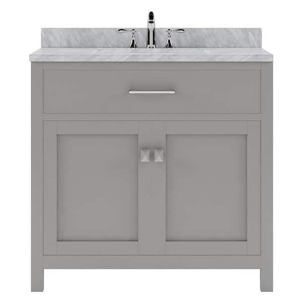 Caroline 36 in. W Bath Vanity in Gray with Marble Vanity Top in White with Round Basin