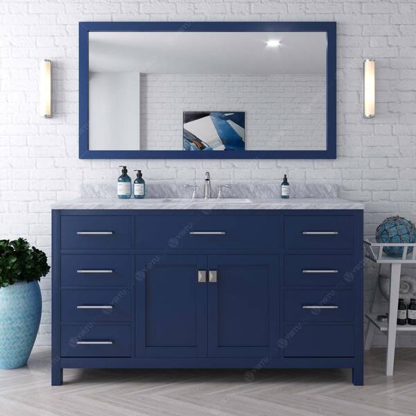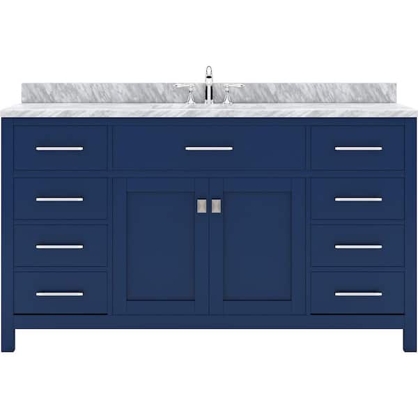Caroline 60 in. W Bath Vanity in French Blue with White Marble Vanity Top with White Basin