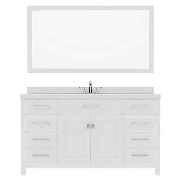 Caroline 60 in. W Bath Vanity in White with Dazzle White Quartz Vanity Top with White Basin and Mirror