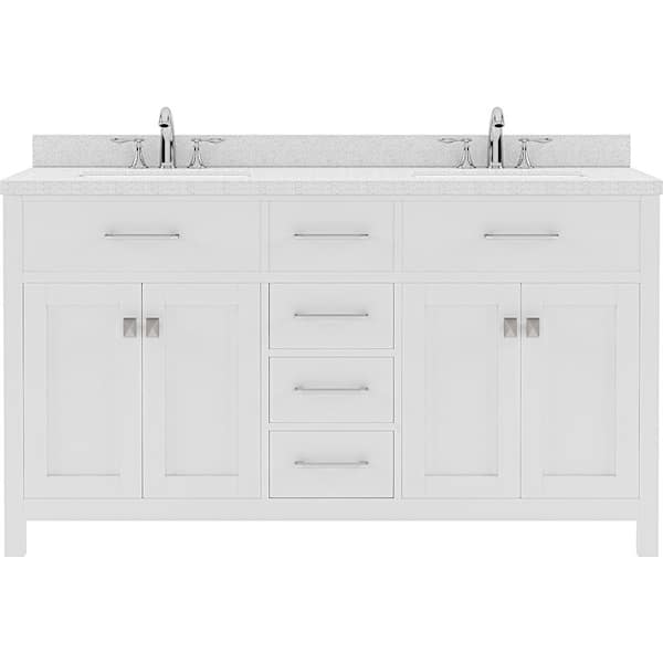 Caroline 60 in. W Bath Vanity in White with Quartz Vanity Top in White with White Basin