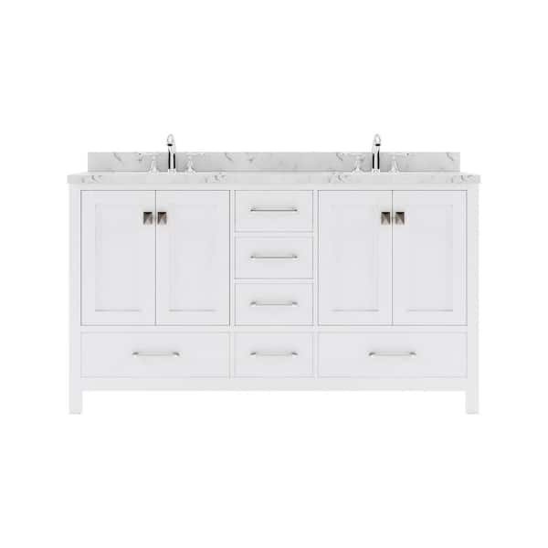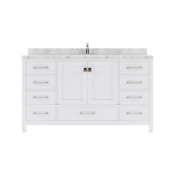 Caroline Avenue 60 in. W x 22 in. D x 35 in. H Single Sink Bath Vanity in White with Quartz Top