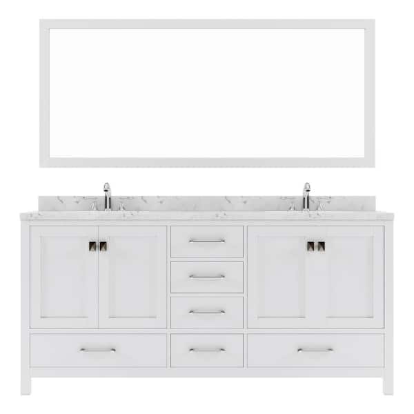 Caroline Avenue 72 in. W x 22 in. D x 35 in. H Double Sink Bath Vanity in White with Quartz Top and Mirror