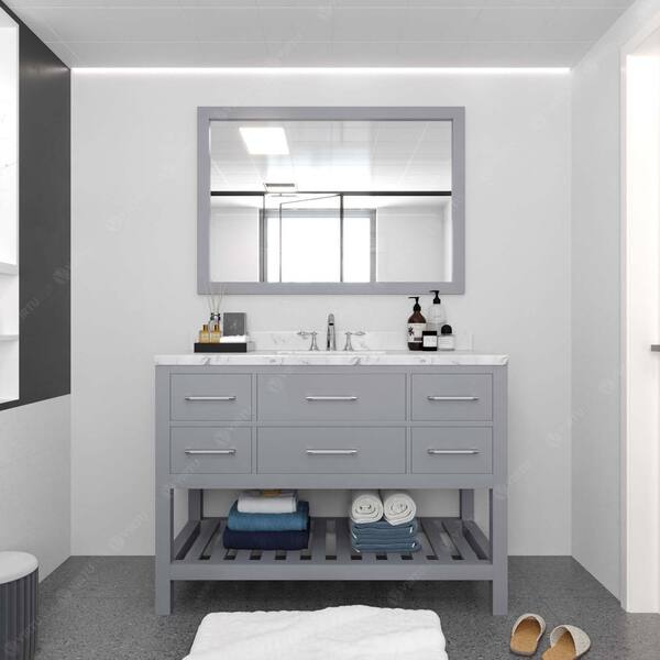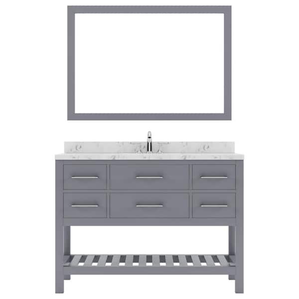Caroline Estate 48 in. W x 22 in. D x 35 in. H Single Sink Bath Vanity in Gray with Quartz Top and Mirror
