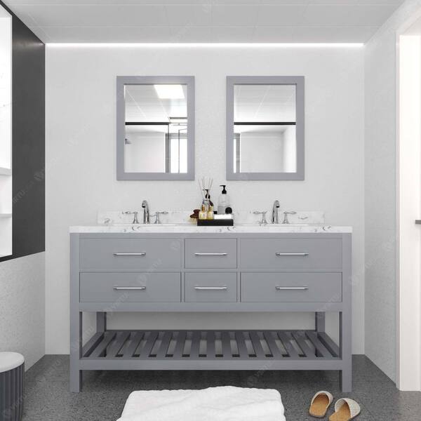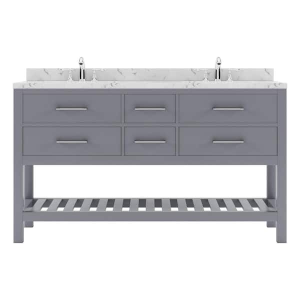 Caroline Estate 60 in. W x 22 in. D x 35 in. H Double Sink Bath Vanity in Gray with Quartz Top