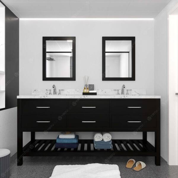 Caroline Estate 72 in. W x 22 in. D x 35 in. H Double Sink Bath Vanity in Espresso with Quartz Top and Mirror
