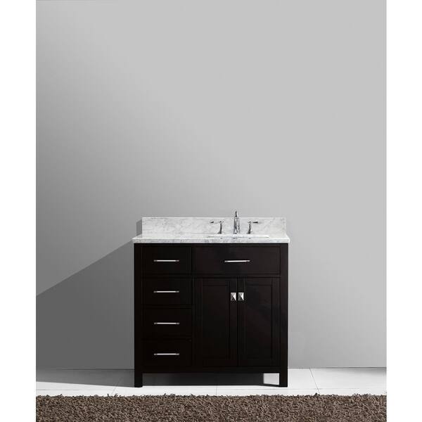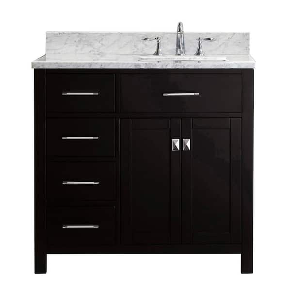 Caroline Parkway 36 in. W Bath Vanity in Espresso with Marble Vanity Top in White with Square Basin
