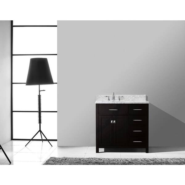 Caroline Parkway 36 in. W Bath Vanity in Espresso with Marble Vanity Top in White with Square Basin