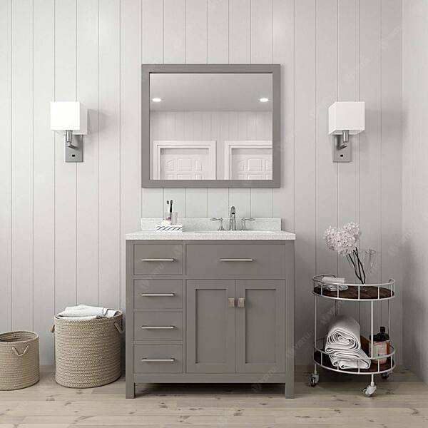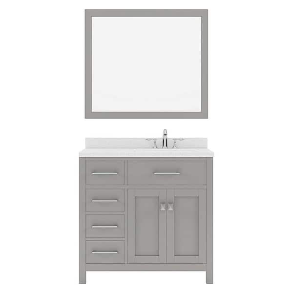 Caroline Parkway 36 in. W x 22 in. D x 35 in. H Single Sink Bath Vanity in Cashmere Gray with Quartz Top and Mirror