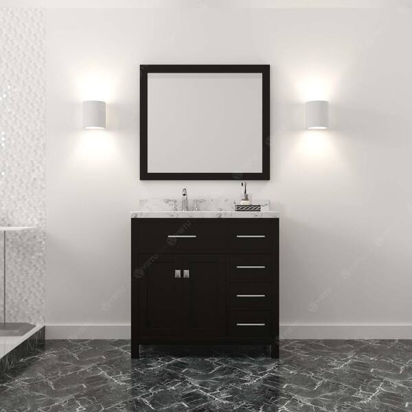 Caroline Parkway 36 in. W x 22 in. D x 35 in. H Single Sink Bath Vanity in Espresso with Quartz Top and Mirror