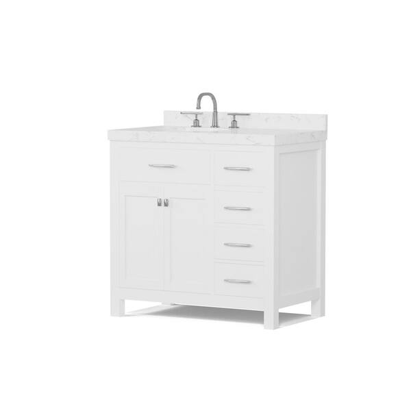Caroline Parkway 36 in. W x 22 in. D x 35 in. H Single Sink Bath Vanity in White with Quartz Top